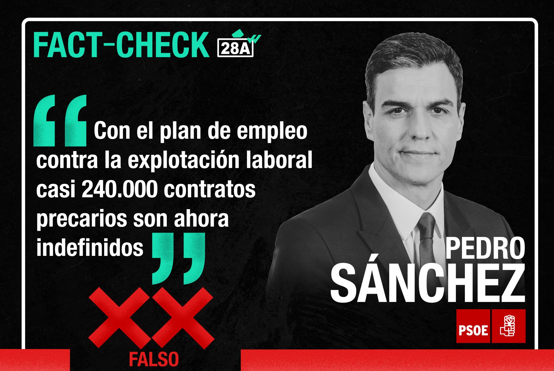 Sánchez dijo que su plan contra la explotación laboral ha regularizado «240.000 contratos en precario que ahora son indefinidos». Es FALSO. Ayer dijo 190.000. Aquí lo explicamos.