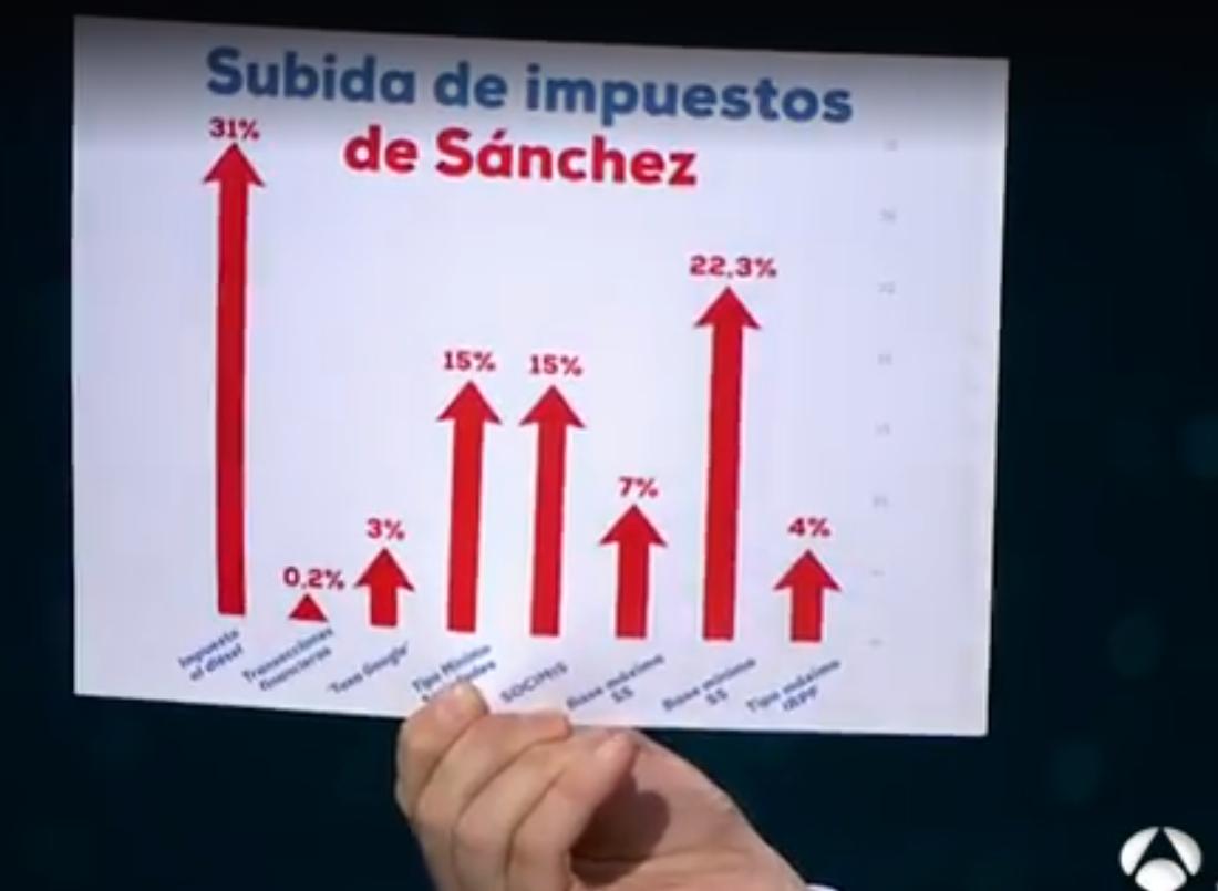 Este gráfico de Pablo Casado indica que Sánchez planeaba una subida del impuesto al diésel del 31%. Esto es FALSO, como contamos aquí.