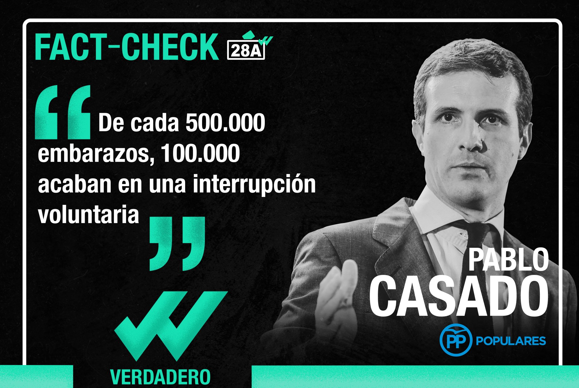 Pablo Casado dijo: “De cada 500.000 embarazos, 100.000 acaban en una interrupción voluntaria”. Es VERDADERO. Los datos aquí.
