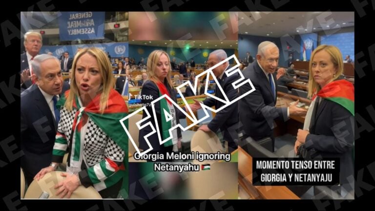 Cuidado con los vídeos de Meloni “ignorando” a Netanyahu con la bandera palestina: están hechos con IA